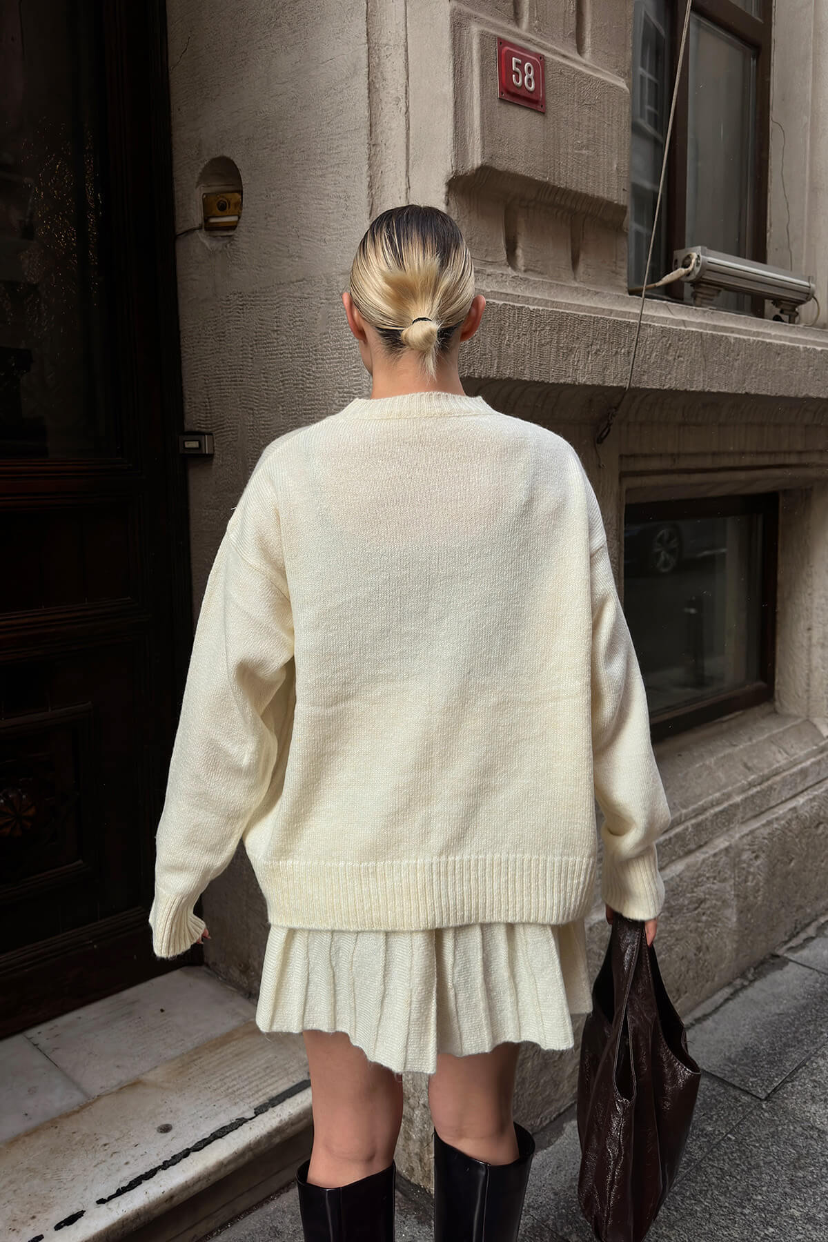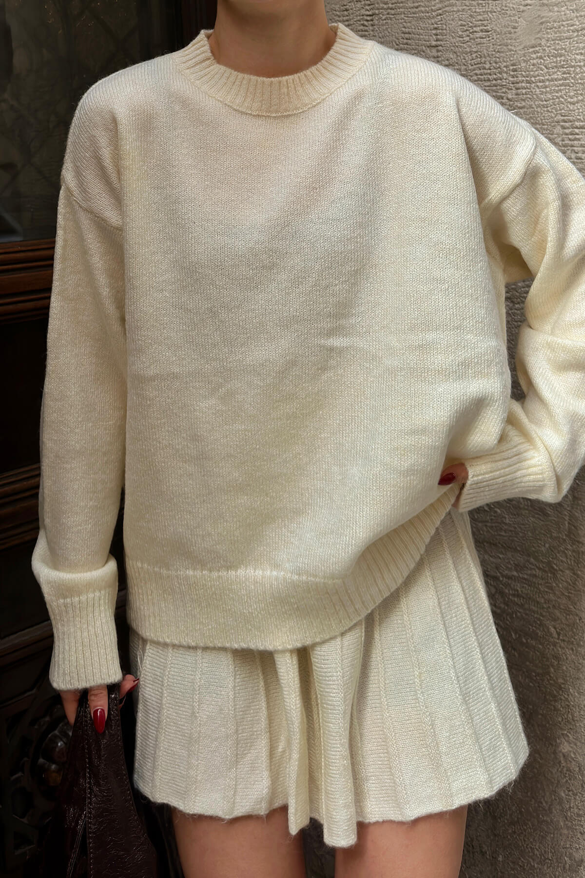 Bej Paloma Piliseli Etek-Bisiklet Yaka Kazak Kadın Triko Alt Üst Takım