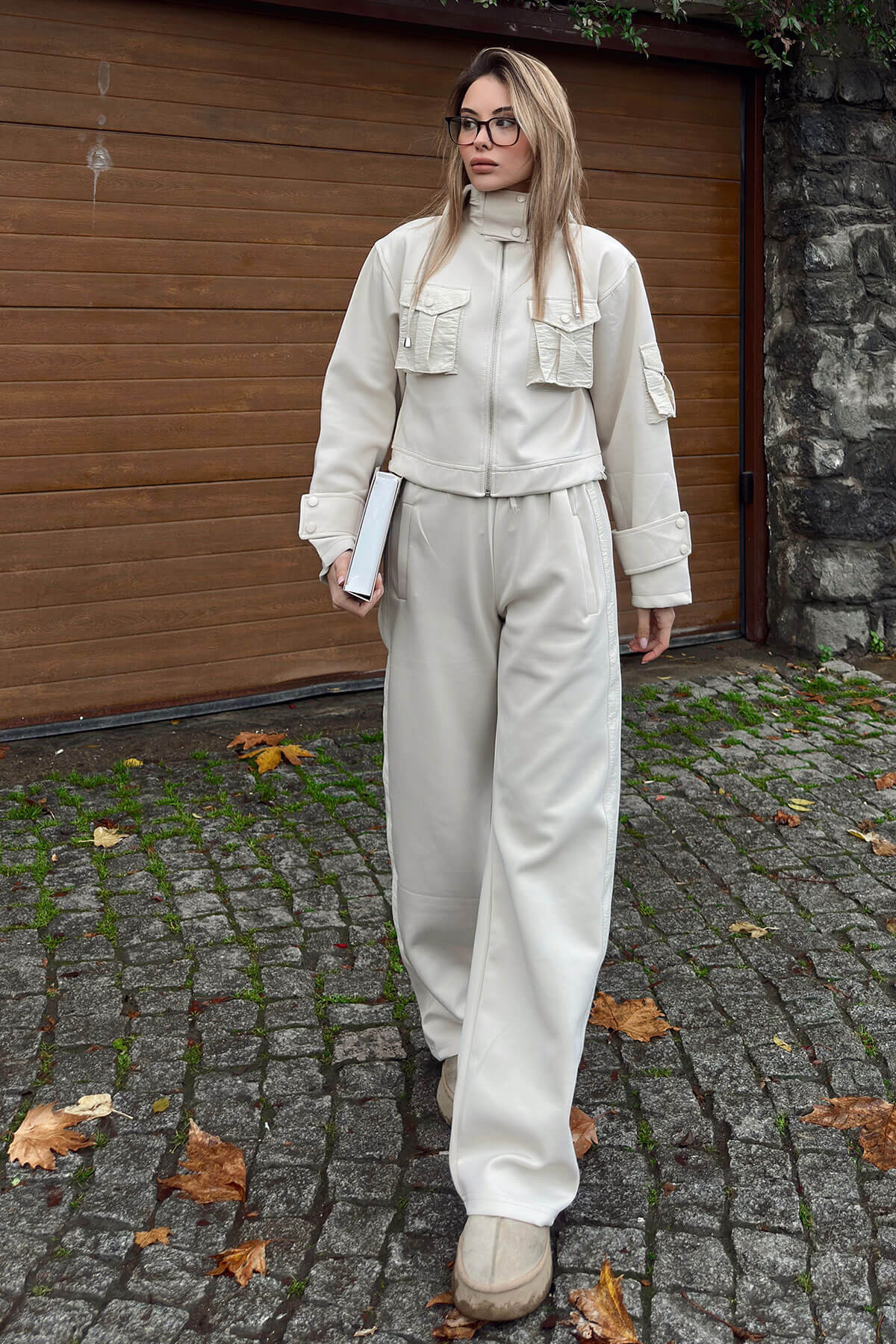 Scuba Kapüşonlu Fermuarlı Crop Pantolon Cepli Kadın Alt Üst Takım, sportif şıklığı modern tasarım detaylarıyla bir araya getirir. Scuba kumaşın tok ve pürüzsüz yapısı, takıma yapılandırılmış ve dinamik bir görünüm kazandırırken gün boyu konforlu bir kullanım sunar. Kapüşonlu ve fermuarlı crop üst, sportif bir duruş sağlarken bel hattını dengeli şekilde vurgular. Alt parçada yer alan cepli pantolon tasarımı, hem fonksiyonel hem de şehir stiline uyumlu bir yapı oluşturur. Esnek yapısı sayesinde hareket özgürlüğü sunan bu kadın alt üst takım, günlük yaşamda rahatlıkla tercih edilebilir. Şehir kombinlerinden hafta sonu stiline, seyahat görünümlerinden casual şıklığa kadar geniş bir kullanım alanına sahiptir. Sneaker ve basic aksesuarlarla tamamlandığında modern ve enerjik bir görünüm sunan bu takım, sezon trendlerini yansıtan rahat ve stil sahibi bir alternatif olarak öne çıkar.