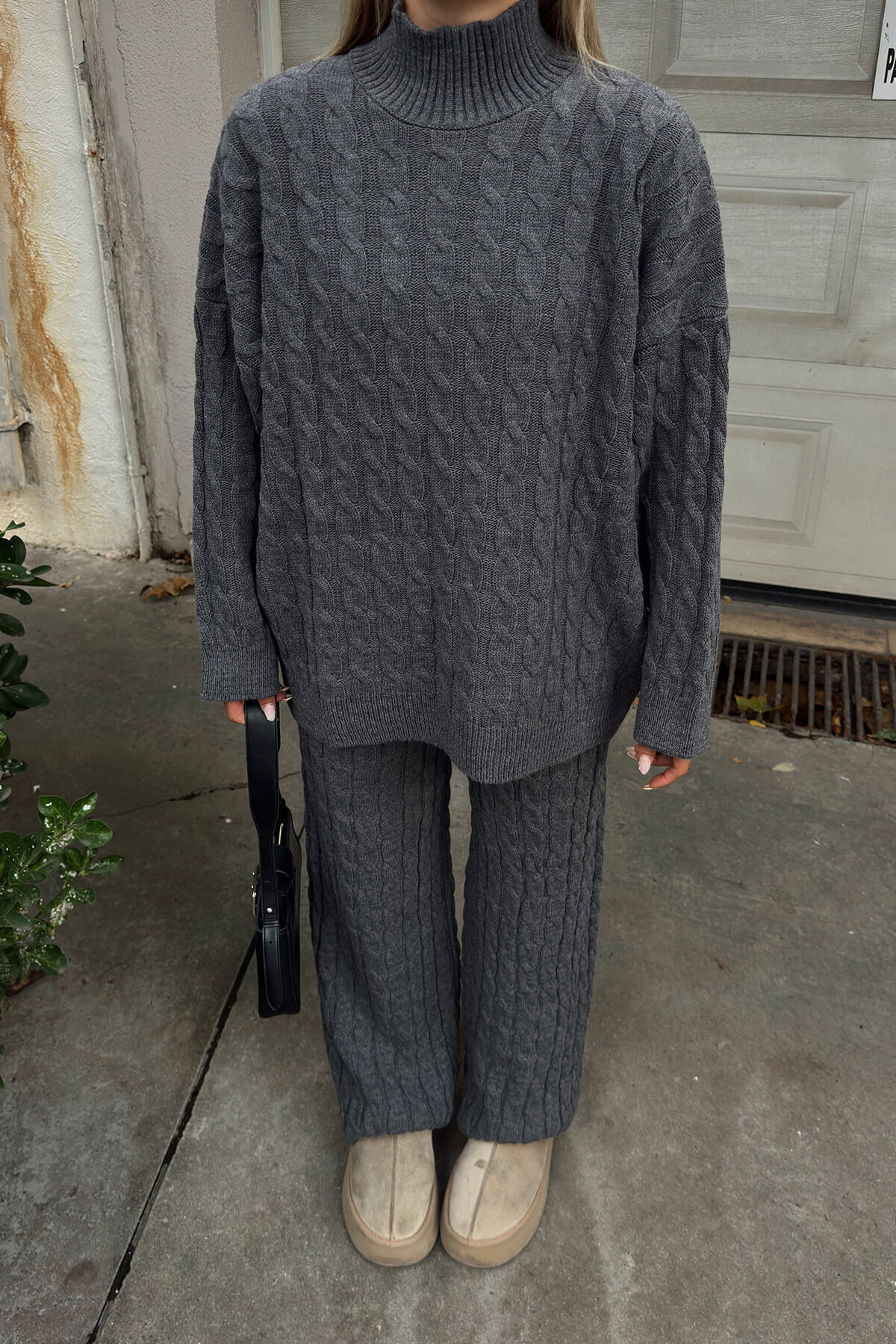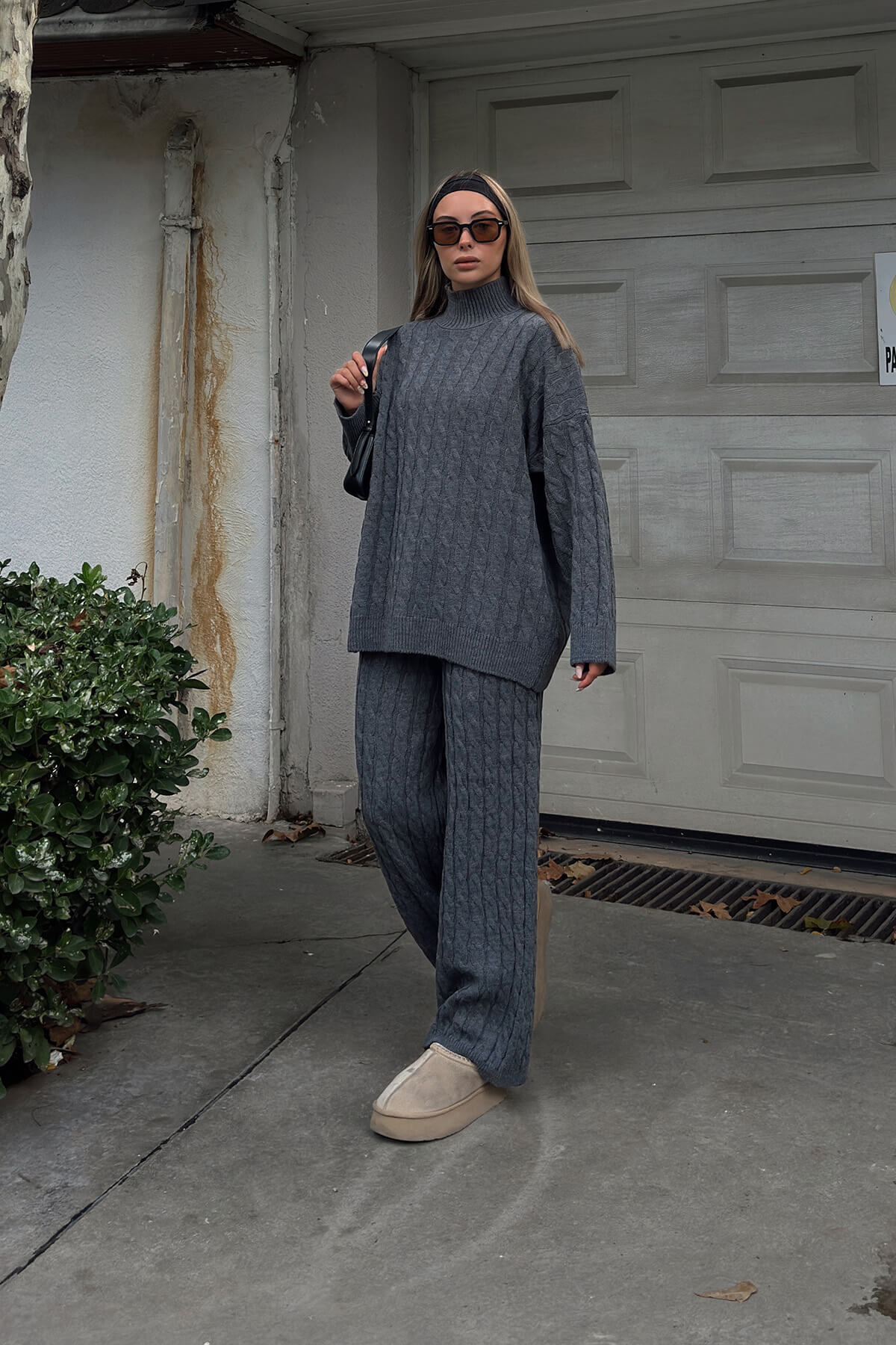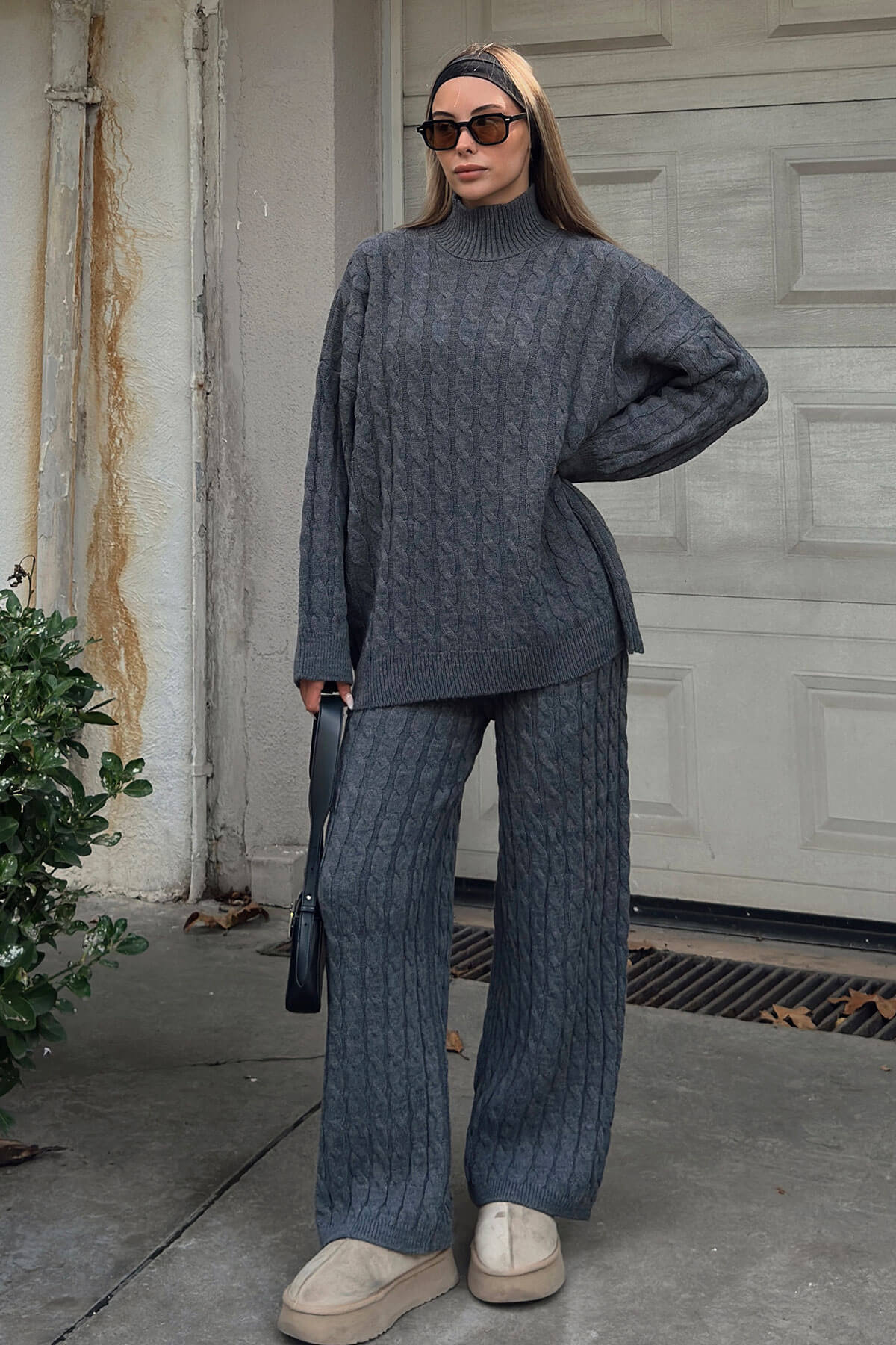 Saç örgü desenli kazak ve uyumlu triko pantolondan oluşan kadın alt-üst takımımız, sıcaklık ve zarafeti bir arada sunar. Özenle örülmüş saç örgü dokusu, el işi hissi vererek modele zengin bir doku kazandırır. Kazakın rahat yarım balıkçı yaka , farklı stil tercihlerine uyum sağlar. Pantolonun yüksek belli kesimi bele nazikçe otururken düz veya hafif geniş paça alternatifleri ile farklı kombinler oluşturulabilir. Yumuşak iplik karışımı cilde nazik davranır; nefes alabilen yapısı mevsim geçişlerinde de konfor sağlar. İnce ribana manşet ve etek ucu modelin formunu korur; kaliteli dikişler uzun ömür garantiler. Yan cepler ve elastik bel bantı günlük kullanımda pratiklik sunar. Takım ofisten hafta sonuna, seyahatten akşam buluşmalarına kadar çok yönlü kullanılabilir. Farklı renk seçenekleriyle sunulan model, katmanlama ve aksesuarlarla kolayca kişiselleştirilebilir. Kolay bakım talimatları ve dayanıklı malzeme seçimi sayesinde bu saç örgü desenli triko takım, gardırobunuzun vazgeçilmez parçalarından biri olacak. Şıklığı ve rahatlığı bir arada sunarak favori.
