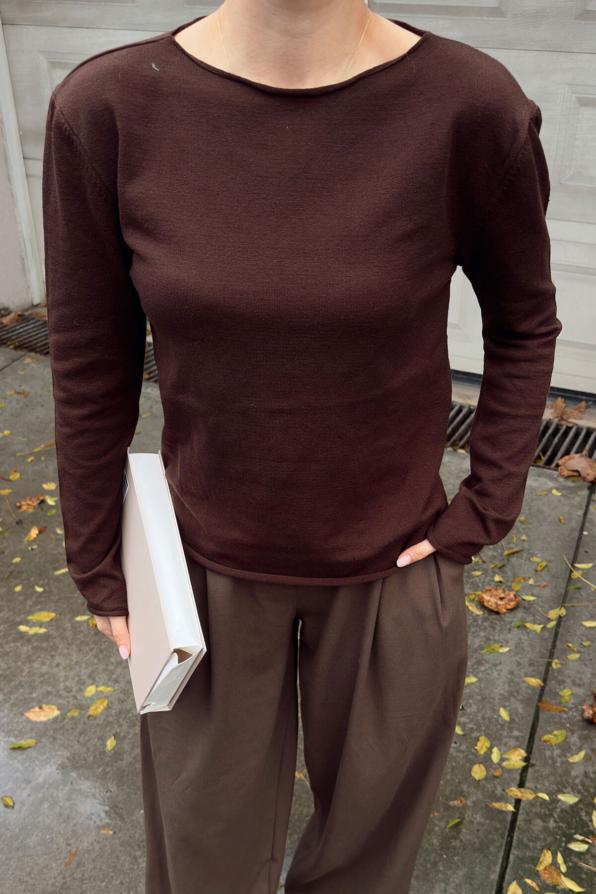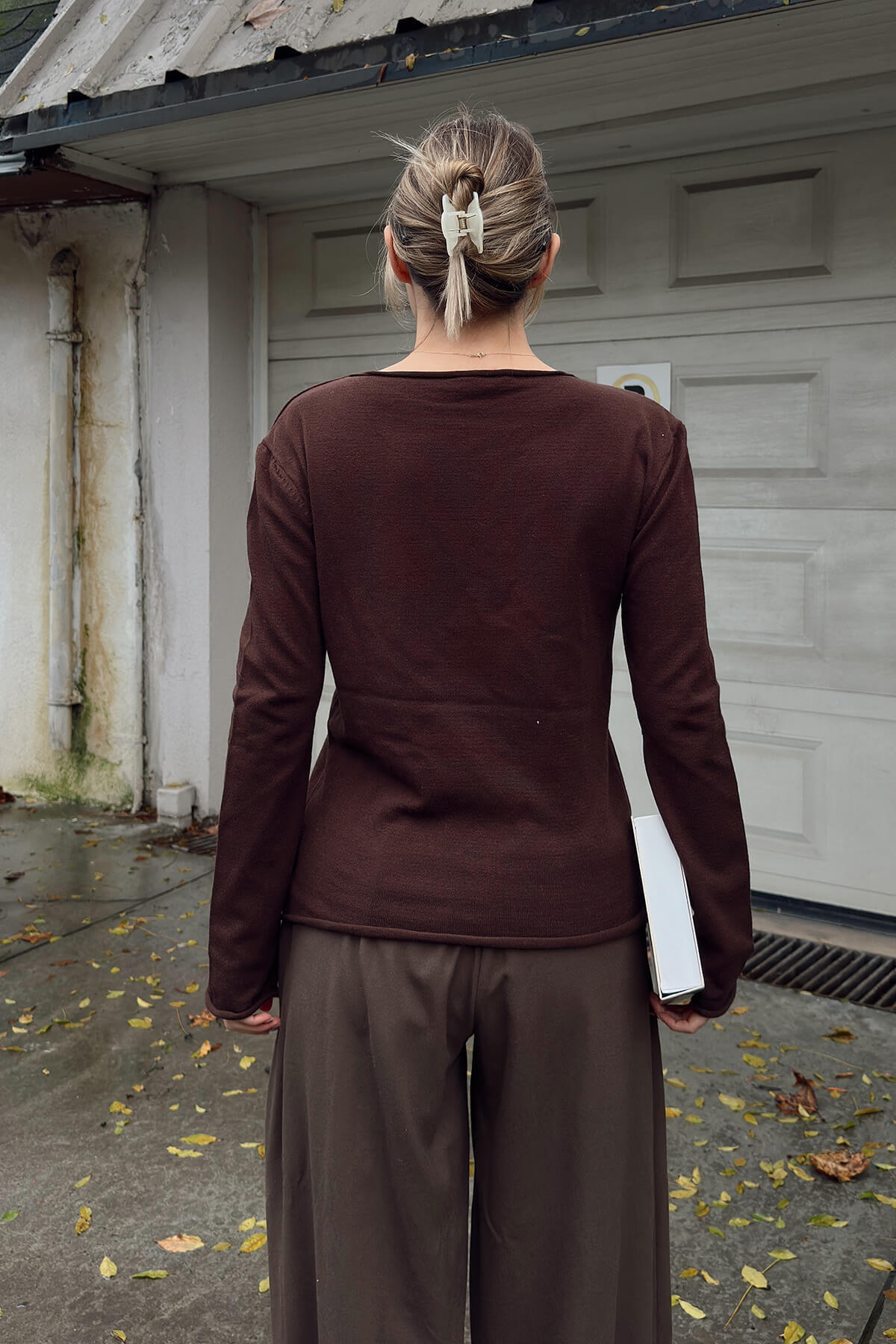 Kahverengi Kayık Yaka Basic Kadın Korsman Triko Bluz