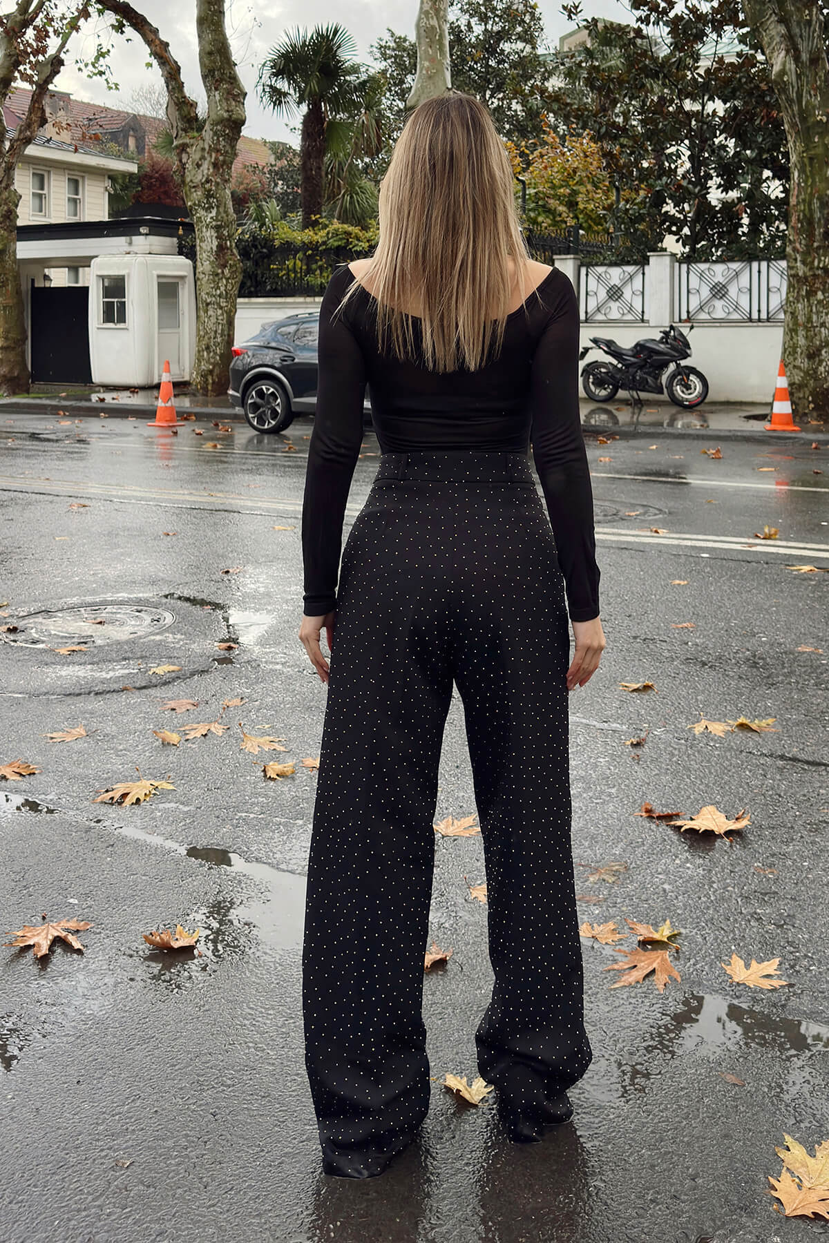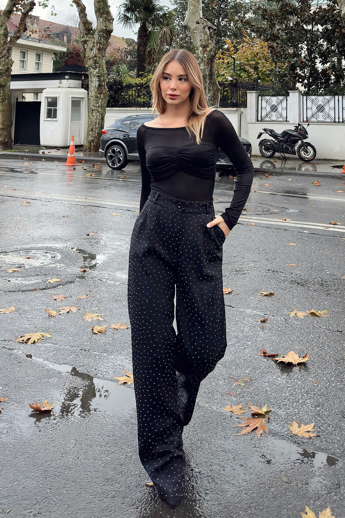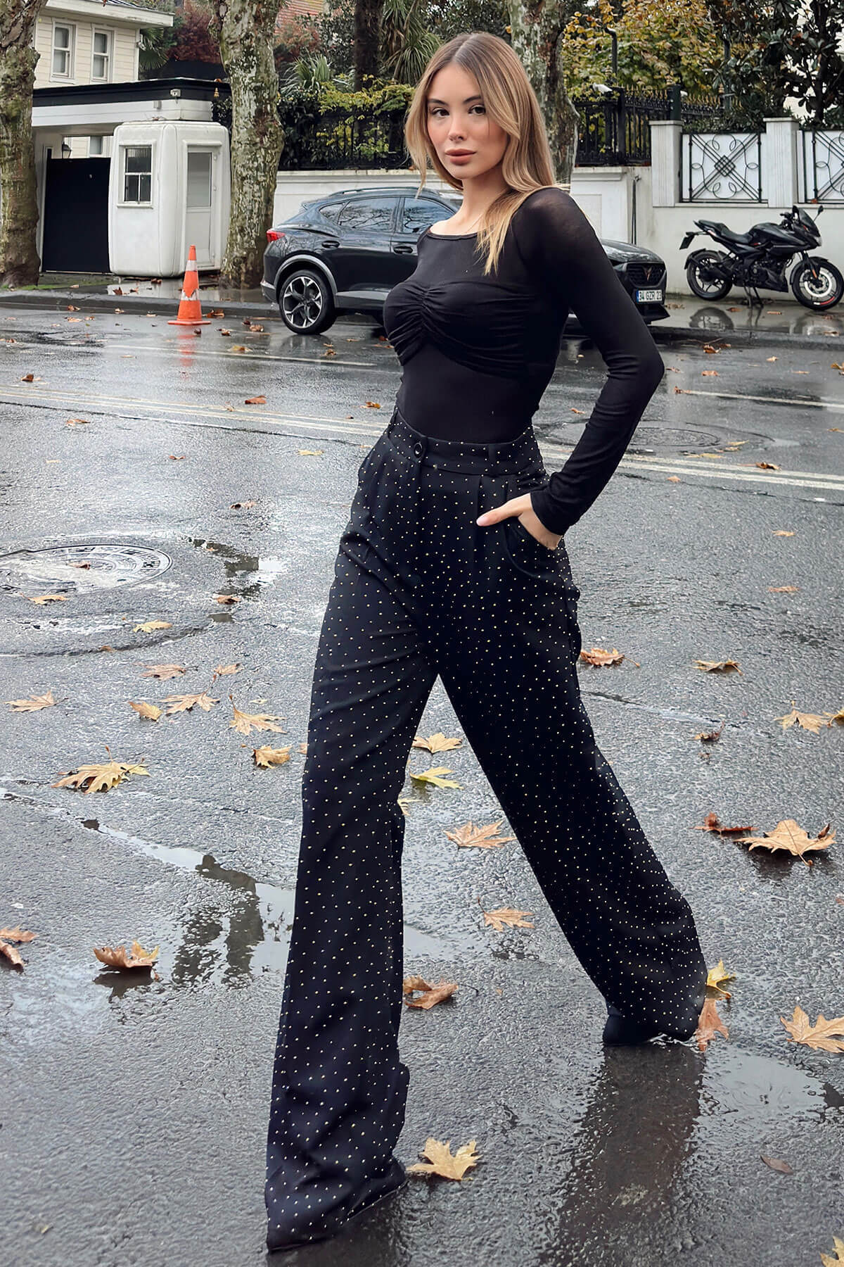 Taş Detay Yüksek Bel Cepli Kadın Palazzo Pantolon, zarif detayları ve modern kesimiyle kadın giyimde şıklığı konforla buluşturur. Yüksek bel tasarımı, bel hattını toparlayarak daha uzun ve dengeli bir siluet oluştururken palazzo kesim paçaları akıcı ve güçlü bir duruş sunar. Ön kısımda yer alan taş detaylar, pantolona sofistike bir ışıltı kazandırarak sade kombinleri bile öne çıkarır. Cepli yapısı, tasarıma hem fonksiyonel hem de modern bir görünüm ekler. Hafif ve dökümlü kumaşı sayesinde gün boyu rahat bir kullanım sunan bu palazzo pantolon, hareket özgürlüğünü ön planda tutar. Günlük şehir stilinden ofis kombinlerine ve özel davet görünümlerine kadar geniş bir kullanım alanına sahiptir. Bluzlar, gömlekler ve ceketlerle kolayca kombinlenebilen bu kadın palazzo pantolon, sezon trendlerini yansıtan şık ve güçlü bir stil alternatifi sunar.