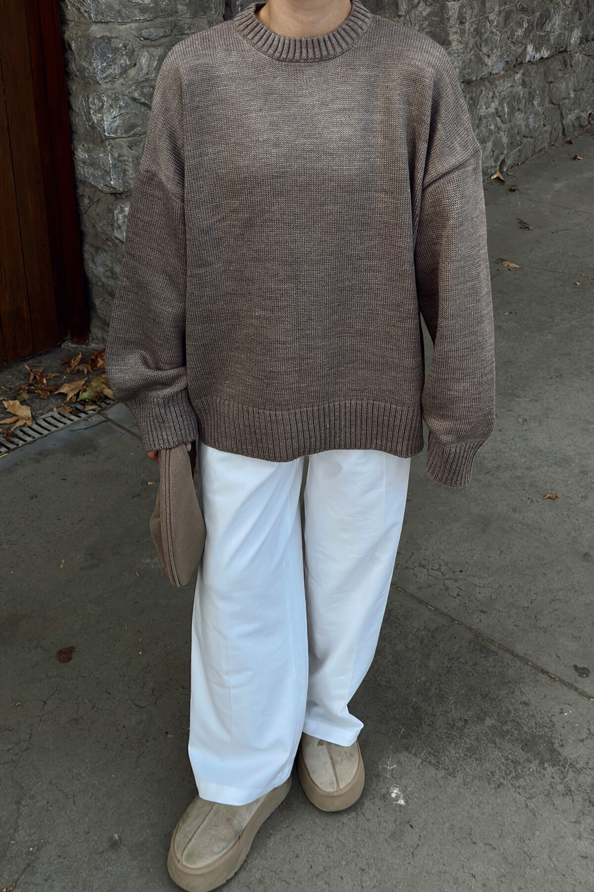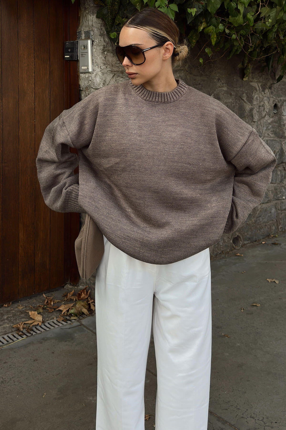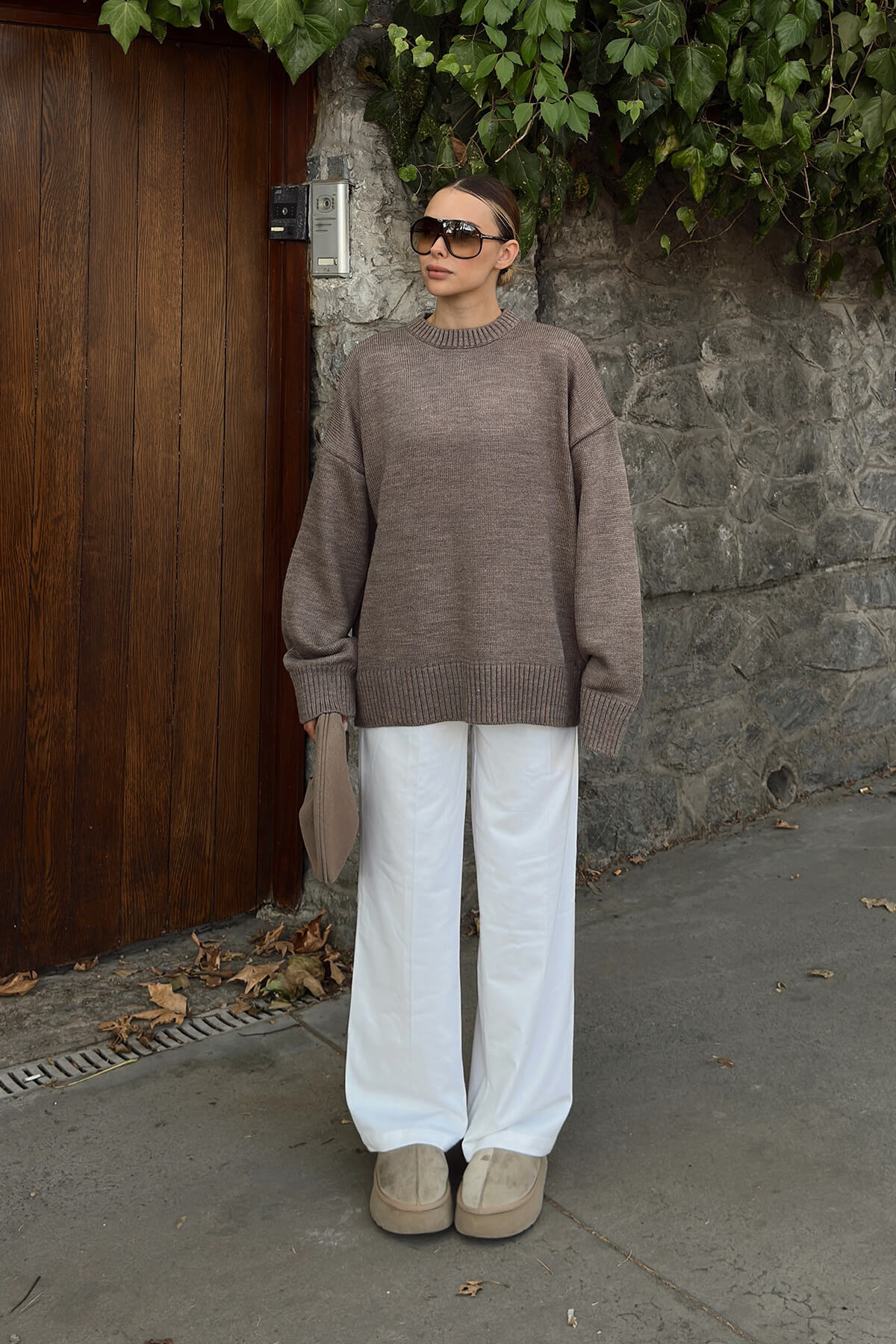Vizon Biscuit Bisiklet Yaka Oversize Kadın Triko Kazak